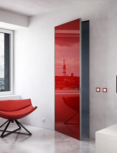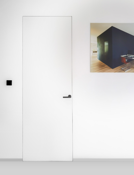 Wooden invisible doors with aluminum door frame. Surface can be decorated in RAL or NCS colors